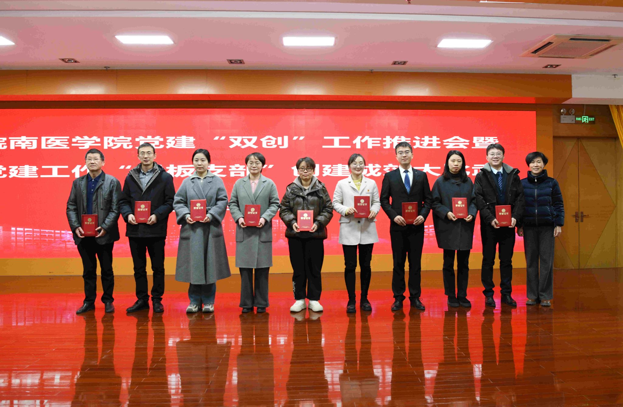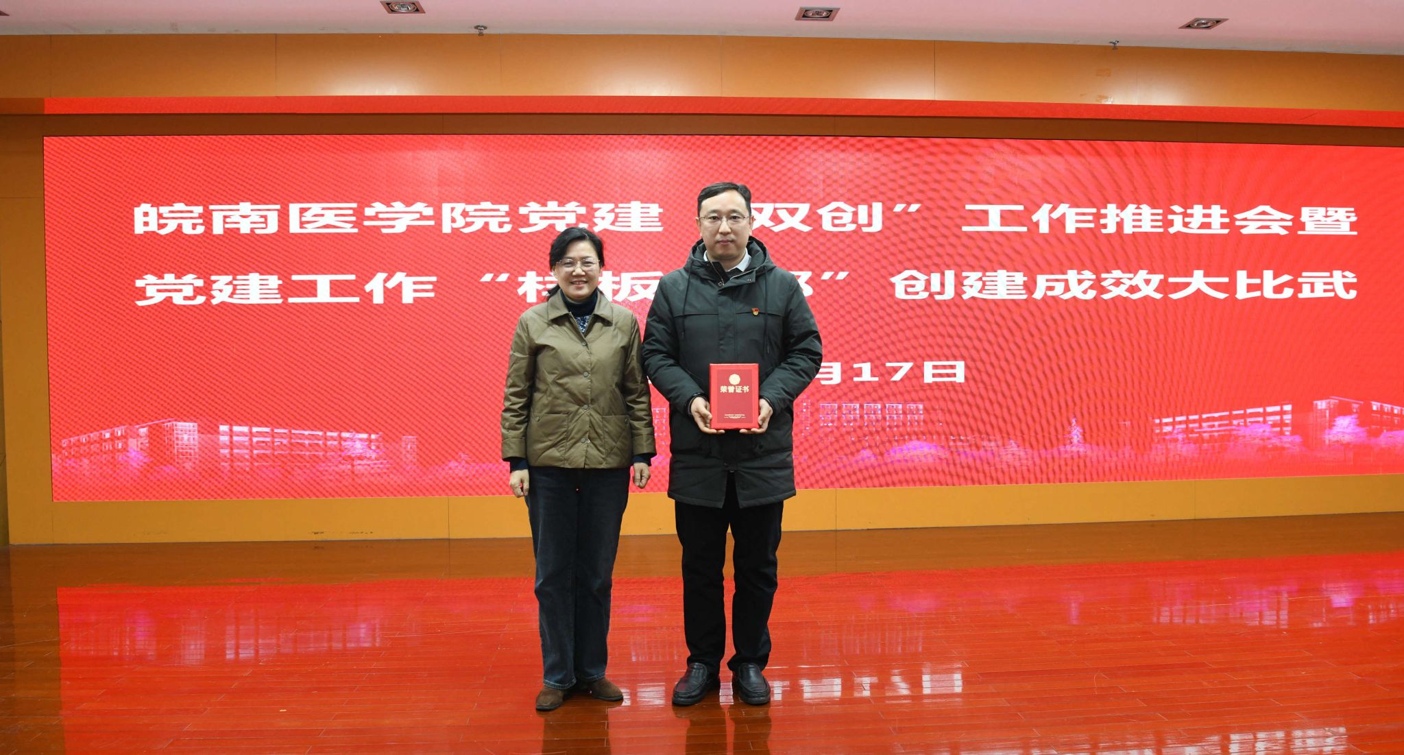 经现场评审,第二附属医院临床十党支部书记叶胜获得本次比赛“擂主”称号,基础医学院人体解剖学党支部书记赵健、基础医学院医学寄生虫学党支部书记湛孝东、临床医学院学生第二党支部书记沈莹、护理学院教工第一党支部书记汪苗、药学院学生第三党支部书记金鑫、研究生学院研究生第一党支部书记孙铭钟、麻醉学院学生第一党支部书记房尚萍、第一附属医院(弋矶山医院)神经外科第一党支部书记戴易、公共卫生学院学生第四党支部书记李超君等9名同志获“优秀选手”称号。夏劲松、贾贤燕分别为“擂主”和“优秀选手”颁奖。