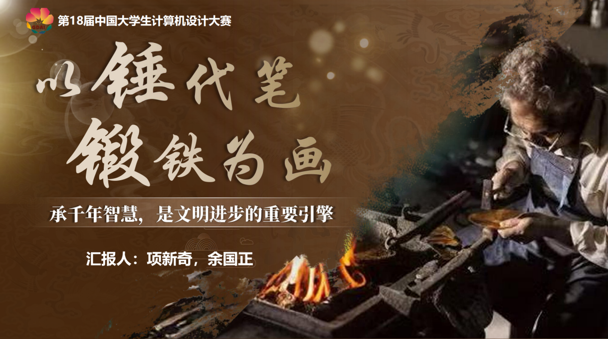 获奖作品《以锤代笔 锻铁为画》由医学影像学院项新奇、滕婕、王嘉怡、章译文、余国正五位同学协作完成,徐晓燕、张昱昊两位老师进行指导。在创作过程中,他们自学编剧、导演、拍摄、剪辑、配音等技术,运用先进的计算机数字手段,将古老的芜湖铁画技艺从诞生历史、制作过程再到技艺传承一一进行呈现。通过细腻的动画设计、精心的镜头语言和丰富的创意表达,作品不仅生动展示了芜湖铁画“以锤代笔,锻铁为画”的独特魅力,还深入挖掘了其背后的历史文化内涵,实现了传统技艺与现代科技的完美融合,为古老技艺的传承与发展开辟了新的路径,也成功将芜湖非遗的魅力绽放在国赛舞台。