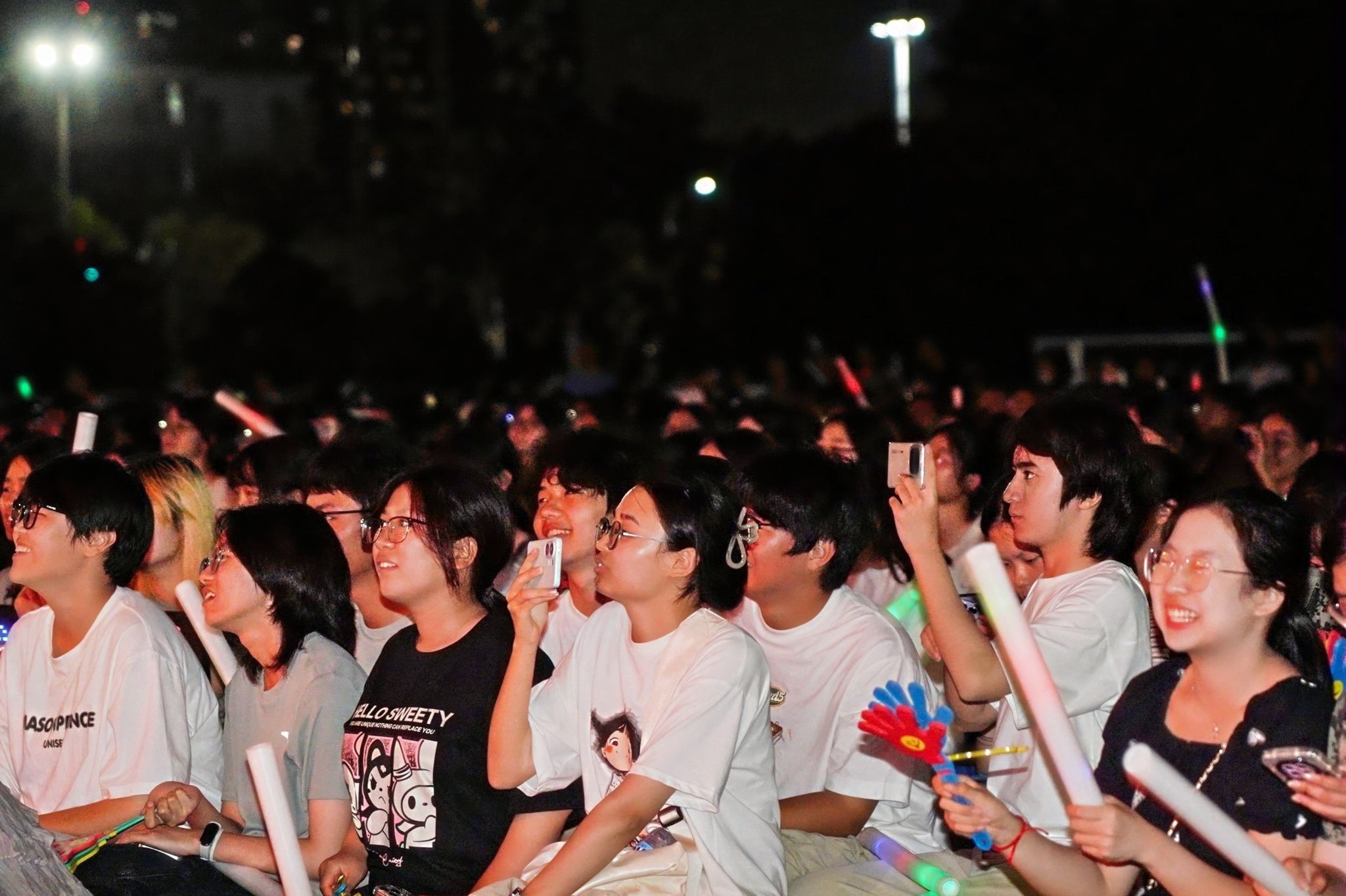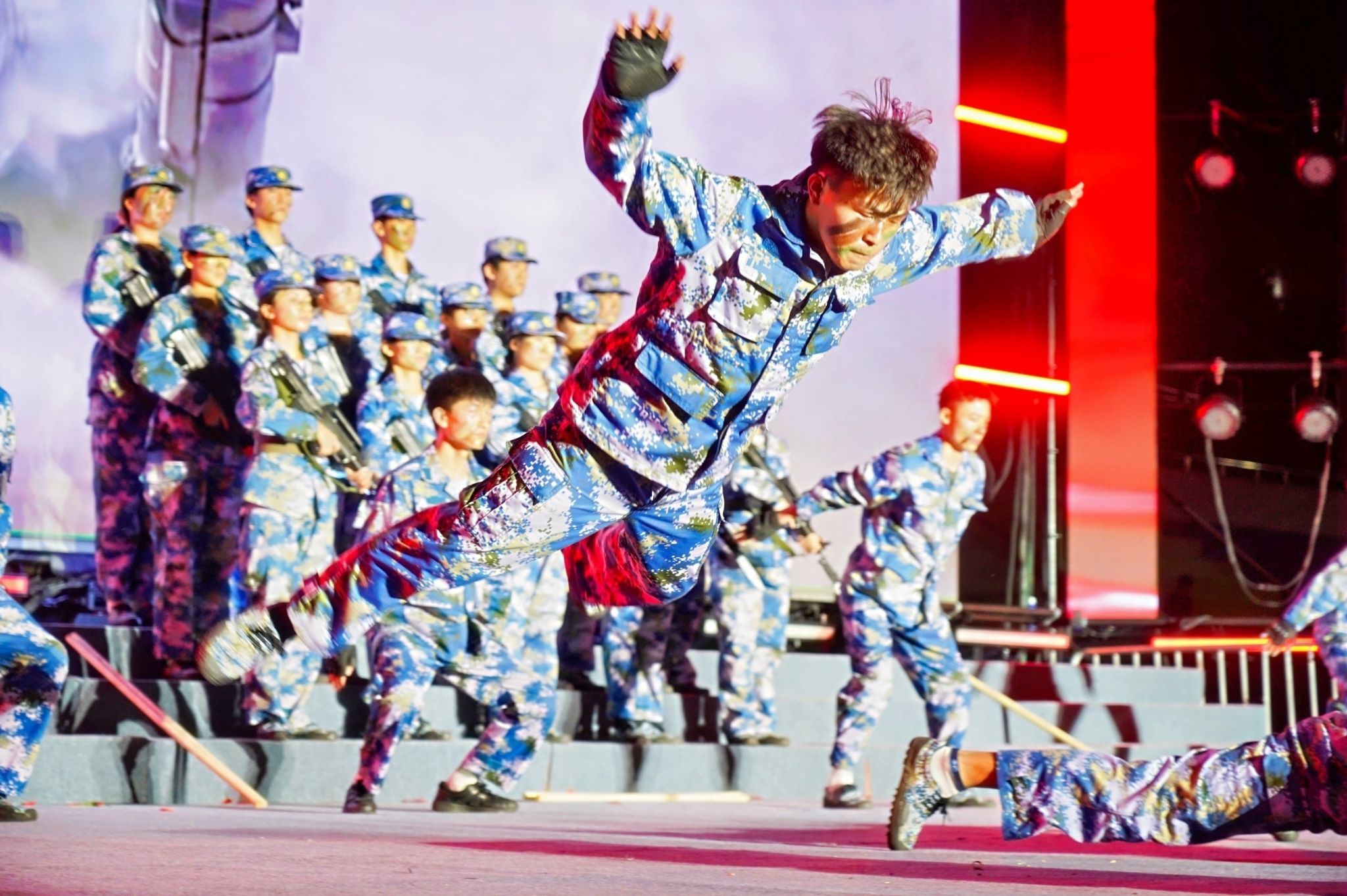 晚会在恢弘大气的开场龙鼓《旌旗半卷战九霄》中拉开帷幕;器乐合奏《就是哪吒》展现传统文化和当代精神的激情碰撞,传递“打破束缚、勇往直前”的青春无畏;军事爱好者协会带来的队列表演《钢铁洪流》刚劲有力,英姿勃发、气贯长虹,让人回想起抗战胜利80周年阅兵时的震撼场景;参加九三阅兵的两名在校退役大学生代忠意、张允乔现场分享他们通过层层选拔、经历刻苦训练,最终走到天安门阅兵现场的心路历程,一句“脚下的安宁是先辈热血换来的”让全场掌声雷动,经久不息;新生辅导员代表唱响纪念中国人民抗日战争暨世界反法西斯战争胜利80周年主题歌曲《铭记》,追忆烽火岁月,致敬伟大抗战精神,点燃在场师生心底的家国情怀,引发强烈共鸣;舞蹈《山河图》展现祖国大好河山,以今天的繁华盛世回应英雄先烈,书写这封跨越时空的家书;中外学生歌曲联唱《如是》唱出了青年人坚守初心、拼搏奋进的意气风发和追光而行,初心如炬的坚定昂扬。