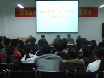 4月10日晚,解放军第一零五医院在我校大学生活动中心多功能会议厅举行了专场面试会,我校麻醉、影像等专业35名毕业生参加。面试会上,解放军第一零五医院的招聘人员对前来应聘的毕业生进行了逐一面试,就毕业生的专业知识、人文素质进行了详细的考察,最终,拟聘用7名,其中影像5名,麻醉2名。