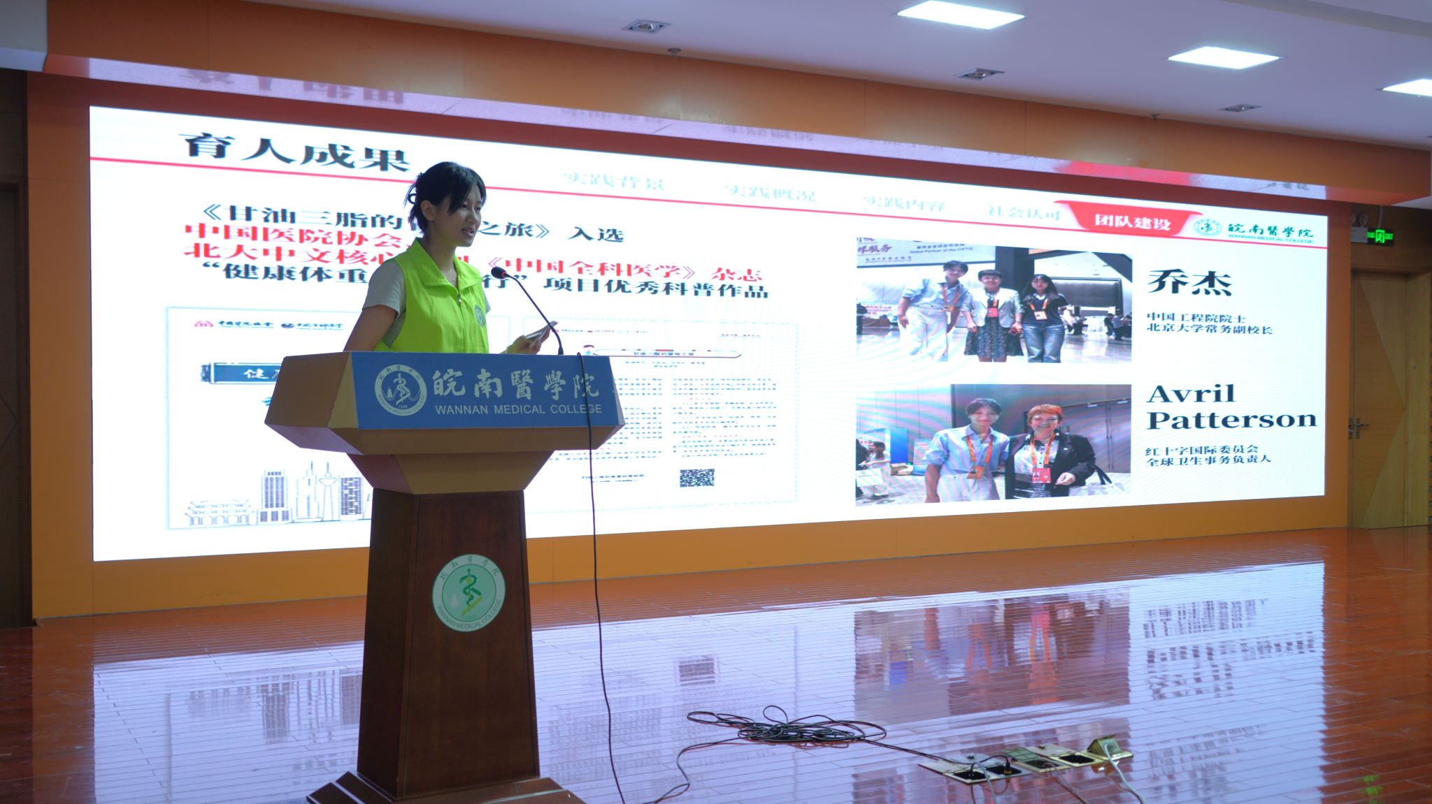 药学院“本草新语”志愿服务队以习近平总书记关于中医药工作的重要论述为遵循,聚焦“十大皖药”产业振兴,以中医药服务的“小处方”对接社会整体联动的“大处方”,助力中医药文化传承创新。医学影像学院“井冈星火”医心剧本创作团分享探寻红色文化传承创新路径,让革命故事与红医精神借剧本载体“活”在当下。临床医学院“医心”志愿服务队秉持“医学蓝”融合“党心红”,用漫画艺术唤醒耕地保护,让创意IP赋能粮食安全,以青春之名,守护中国粮安。“青马”社会实践团立足医学专业特色,回顾并讲述了在“进乡村、进社区、进书院”系列实践中,如何以“向下”的姿态扎根基层,用心、用情、用力投身实践并扣好服务健康基层“第一粒扣子”……“十佳团队”代表先后上台汇报并作经验分享,充分展现了我校青年学子以专业服务社会,以行动践行使命的生动场景。
