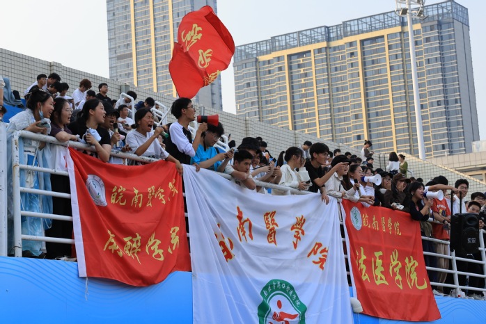 赛场上,各学院运动健儿纵情驰骋,各展英姿,他们追求更高、追求更快、追求更强,用实际行动演绎着体育精神。裁判员认真负责,公正无私,仔细记录赛场上的各项比分,保证公正裁决。赛场外,观众热情高涨,鼓掌声和呐喊声相互交融,让赛事热闹非凡;志愿者随时待命,默默奉献,为比赛有序进行提供最有力的保障。校运会的每一个瞬间都让人热血沸腾,充分彰显了皖医人团结协作、顽强拼搏、意气风发的精神面貌,更是对“精医、尚德、求实、自强”校训和“艰苦创业、求实自强、奉献社会”皖医精神的生动实践。