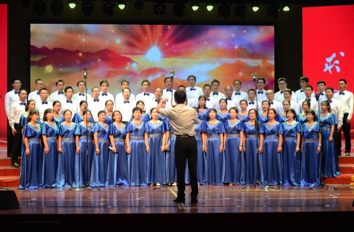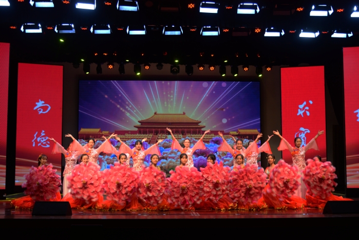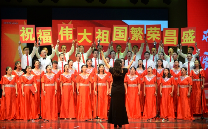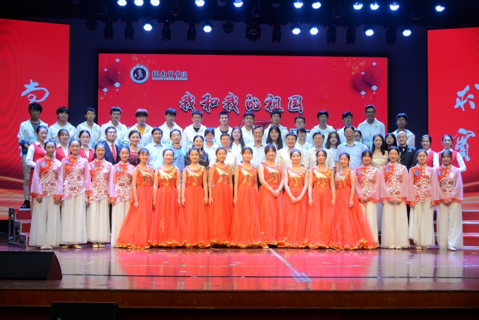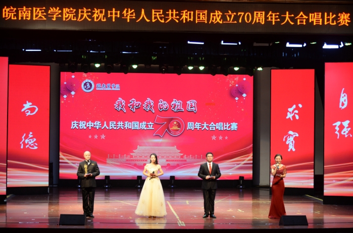 嘹亮歌声颂祖国,深情祝福庆华诞。为庆祝新中国成立70周年,充分激发爱国热情、广泛凝聚奋进力量,营造不忘初心、牢记使命、高举旗帜、砥砺前行的浓厚氛围。9月28日下午,我校在大学生活动中心举办了题为“我和我的祖国”庆祝中华人民共和国成立70周年大合唱比赛,校党委书记章尧,党委副书记、院长廖圣宝,纪委书记刘人人,副院长吴金月、郑兰荣参加比赛。比赛共分三个篇章:开天辟地篇、春天的故事篇和走进新时代篇,12个分工会轮番登台、倾情放歌,用嘹亮的歌声向祖国表达崇高的敬意,为新中国成立70周年献上诚挚的祝福。