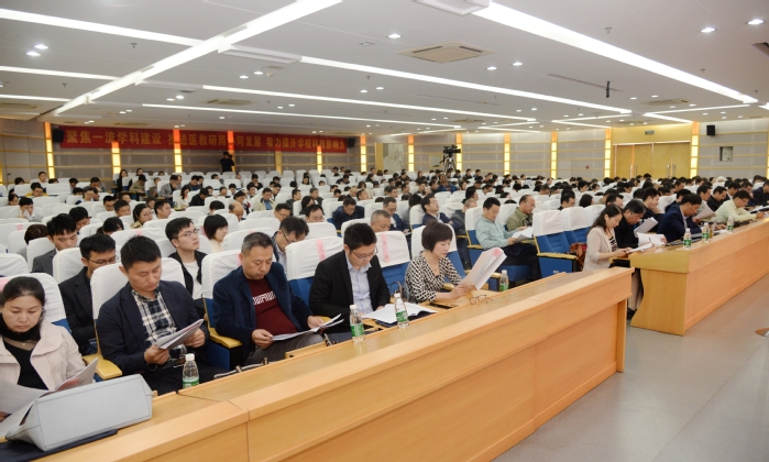凝心聚力谋发展,继往开来谱华章。2019年10月19日,我校第六届科技工作会议在学术报告厅隆重召开。校党委书记章尧,党委副书记、院长廖圣宝,党委副书记李刚,纪委书记刘人人,副院长吴金月、郑兰荣;校党委委员方国庆、陈斌、徐朝阳;校本部处级干部、教研室主任(或主持工作副主任)、实验中心主任(或主持工作副主任)、博士、高级职称人员;直属附院院领导、科技处(科教科)负责人、正高级职称人员、博士;2018年度、2019年度国家级基金项目获得者,2018年度、2019年度省(部)科学技术进步奖及2018-2019年校级自然科学技术奖获得者,总计300余人参加会议。李刚主持开幕式。