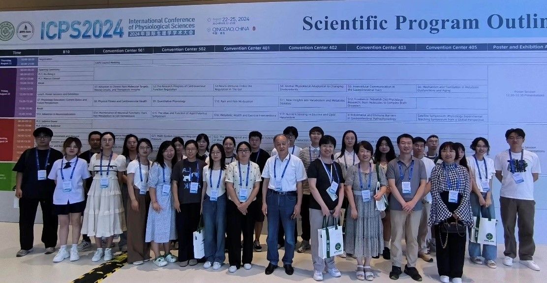 8月22—25日,由中国生理学会主办、康复大学协办的“2024年国际生理学学术大会”在青岛市召开。我校生理学与神经生物学团队教师8人、研究生8人和“启明星”小组成员12人,在张环环、郑超教授的带领下参加大会。